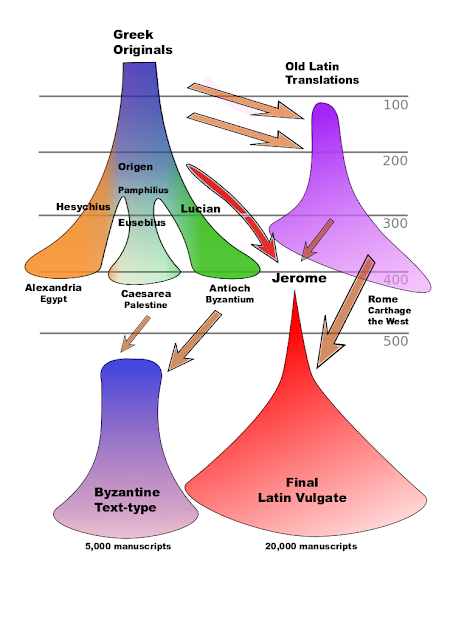 How can this mechanism reverse the position of majority and minority readings? In fact, it can't. It is no mechanism at all. Of course the Latin language finally dominated Western Europe, while the Greek, formerly the dominant international language, faded from the stage. But this provides no mechanism to flip readings upside-down:Certainly the percentage of total manuscripts changed, with Latin manuscripts gradually outnumbering and even overwhelming Greek manuscripts: