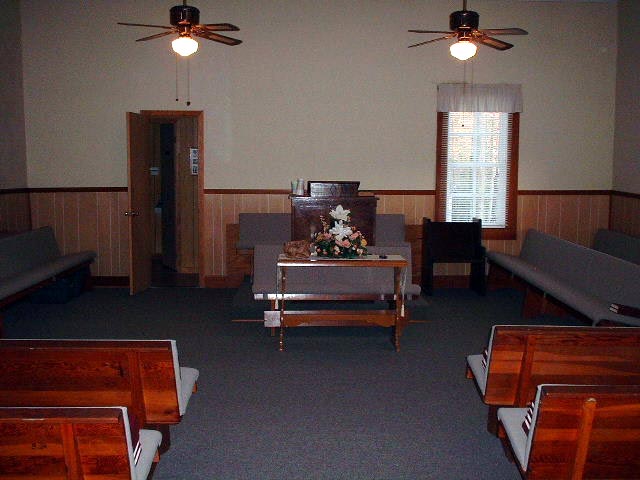 Also note that there is a bench or pew in front of the pulpit in that picture, facing away from the preacher/pulpit. Many of the absolute predestinarian Primitive Baptist around here have such a pew, although I don't think I've ever seen it used. In old-time missionary Baptist, separate Baptist, "streaked-head" Baptist, et al., this is usually a mourner's bench.